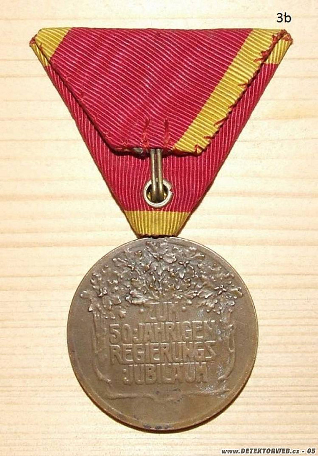 3. Lichtenštajnská jubilejná pamätná medaila z roku 1908, zriadená pri príležitosti 50. výročia nástupu kniežaťa Johanna II. na "kniežací"