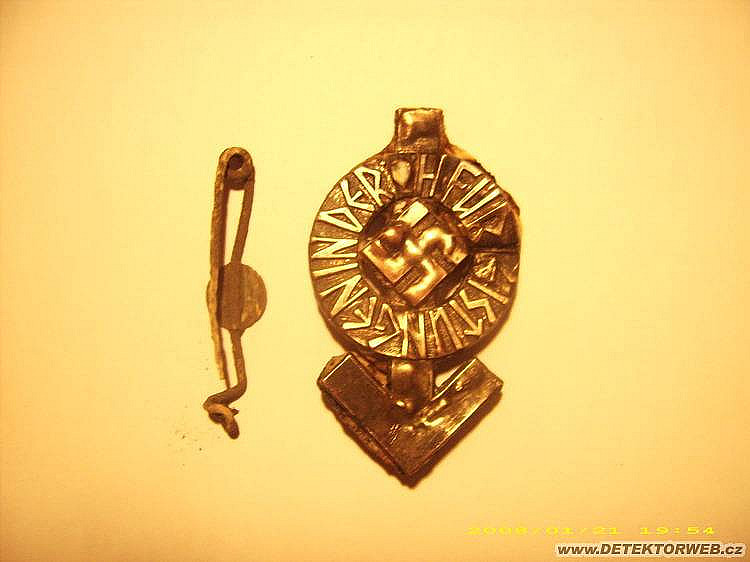 10. 02. 2008, 19:39Jde o odznak Hitlerjugend (HJ Leistungsabzeichen), který zavedl vůdce HJ Reichsjugendführer Baldur von Schirach v červnu 1934. Na odznaku je nápis „Für Leistungen in der H. J.“ (Za výkony v Hitlerjugend) a protíná ho šipka - runa Tyr, která byla symbolem vůdcovství.