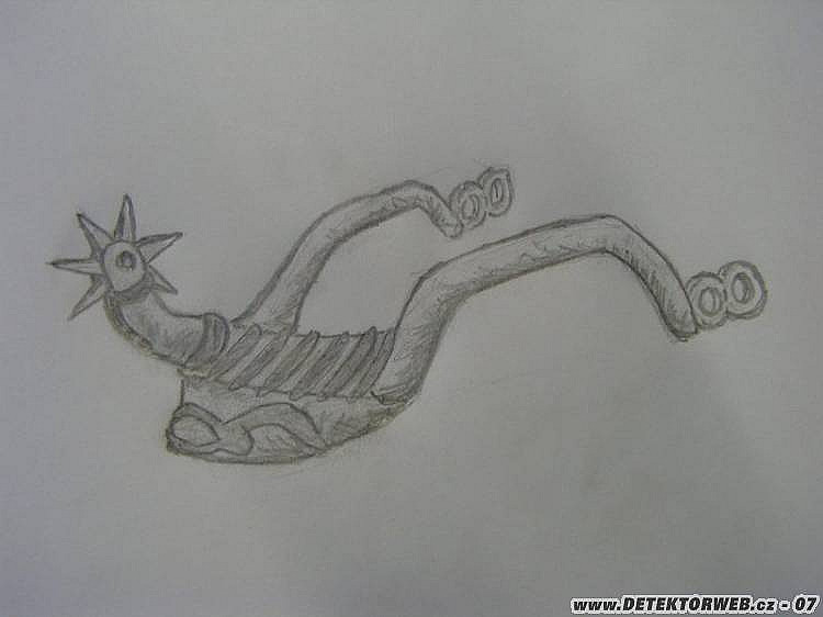 Tak jsem si zase po delší době vyrazil s bordelem do nedalekého kovošrotu a jak už se mi párkrát stalo. Občas tam na mě něco čeká. Po příjezdu vyložím věci na váhu zvážím a odnáším k bednám na různé druhy kovů. Letmo kouknu do bedny, jestli tam není něco co by stálo za záchranu a ejhle, nějakej orezlej bordel. Koukám teda pořádně jestli tam není něco zajímavýho a najednou ostruha. Tak si říkám, že tenhle osud si nezaslouží, aby skončila někde v hutích v tavící peci. Sice do těhle věcí nedělám, ale i tak beru do ruky a podle tvaru si říkám, že bude asi hodně stará. Odnáším jí teda k výkupu, abych se dotázal, co za to? A maník odpoví, ať to neřeším a ten klenot si klidně nechám. Tak beru svoje utržený prašule a s úsměvem a dobrým pocitem ze záchrany uháním čistit, aby se nerozpadla. Dorazím na dílnu a tak teda čistím. Pří odstraňování koroze koukám, že je navíc zdobená. Po očištění zakonzervuju, načmářu alespoň lehkej náčrt, jak asi mohla vypadat a mažu se domů mrknout na net, co tam vypátrám. Jak už jsem psal nejsem znalcem v tomto oboru, ale podle porovnání tvarů a zdobení mi příjde, že by se mohlo jednat o dobu Karlovu co je 14.-15. století. To by potěšilo. No nic určení nechám na vás. Spoléhám, že ROSSY bude vědět přesně. Tak předem díky!