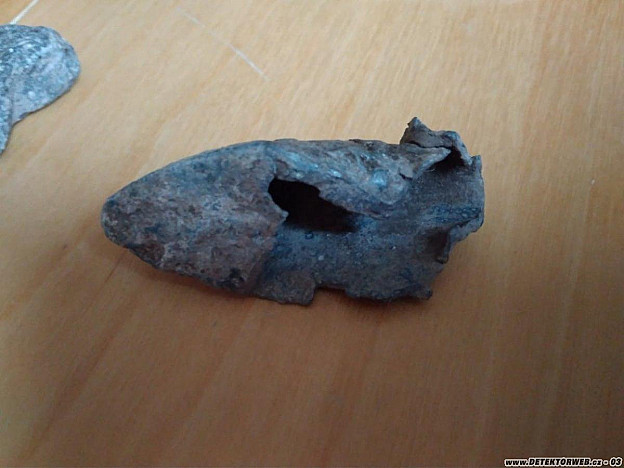 Zdar lovci, posílám drobnost z pole. Je to olověné a na obou stranách je vidět myslivec, jak střílí na jelena. Předpokládám, že to bude z pušky. Nevíte někdo, jaká část pušky to byla? Je tam takový výčnělek, přemýšlel jsem, jestli to nemohla být muška, ale to mi nesedí. Popřípadě stáří.Díky pov