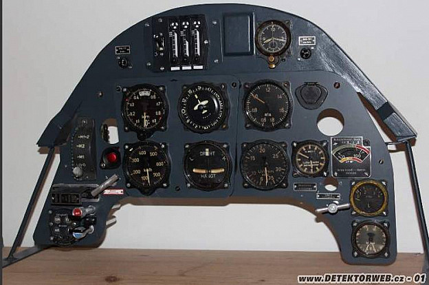 Já jsem se rozhodl pro rekonstrukci palubní desky Messerschmittu 109 modelu F-4. To, co je na fotce, je výsledek zhruba 4 let práce a hlavně shánění. Naneštěstí ne všechno jsou originály a při mé nevelké šikovnosti mi kopie daly pořádně zabrat. Počítadla munice, startér a 4-anziegegerät (ani nevím jak se to jmenuje česky) kontrolek podvozku jsem vyrobil vlastnoručně. Führertochterkompas a kontrolky kanonů jsou kopie vyrobené nadšenci v Německu.