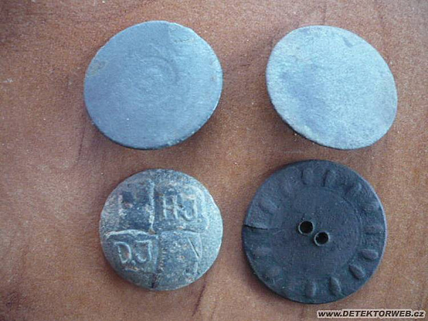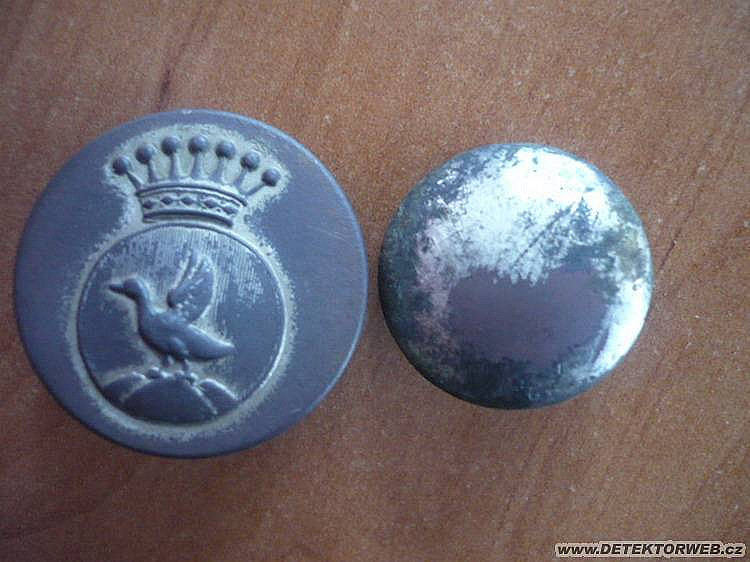 Livrejový baronský knoflík, nevím komu patřil, další je z 19 st.