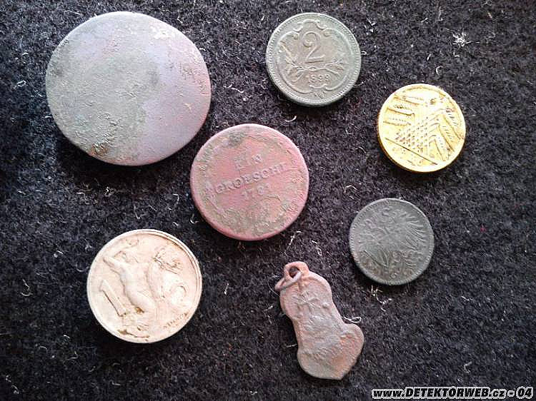 Posílám na pokuk několik nalezených kousků před (namočené v oleji) a po očistě. Dále prosím o radu/zjištění kříže s portrétem F. J. Jinak všem hodně pěkných pípanců a pěkné počasí k tomu...
