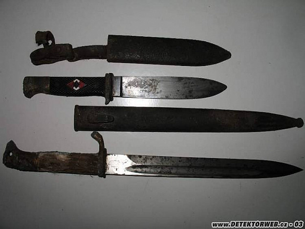 30. 05. 2012, 06:41Moc peknej kop, to udela radost. Zalezi, jak to chces moc renovovat, jedna moznost nastrikat konkor a v ramci moznosti ocistit hadrem a zase nastrikat a takhle nekolikrat, nebo ty pochvy ocistit mosaznym kartacem(mam ho na stolni brusce a to je parada) a pak bud vyvarit v oleji nebo nabrynyrovat za studena brynyrem bezne dostupnym, coz obcas delam, ale abych to zlepsil, tak to pak jeste nad plamenem protahnu tam a zpet, ono to chytne takovou divnou sedou barvu, kterou opet postrikam jednou konkorem a je to pak hezky tmave kovovy. Anebo kdyz to chces mit v lesku, tak ty pochvy vykytuj, obrus do hladka smirglem, strikni plnic tmelu a pak cernou matnou lesklou podle tve libosti.