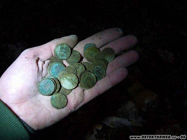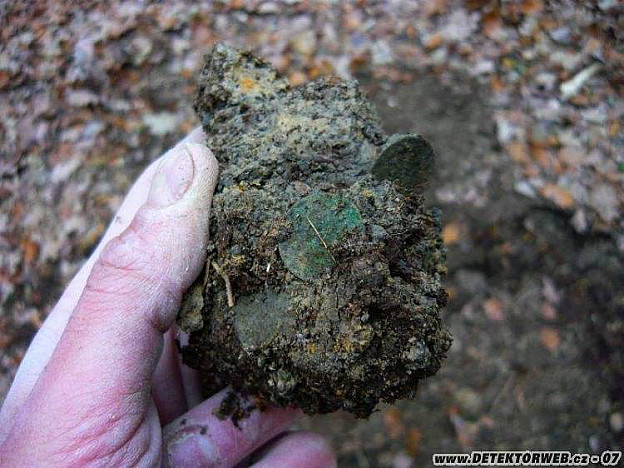 Když už jsem všechny mince vyhrabal a nikde v okolí to ani nepíplo, chtěl jsem jít k autu a jet na oběd, ale ještě mě to táhlo kousek dál do lesa. Ušel jsem sotva 50 metrů a ozval se naprosto čistý signál. To, co se na mě vykutálelo z díry, mě ovšem totálně rozsekalo. Stříbro ze 17. století jsem na tom místě opravdu nečekal. Pokračování příště.