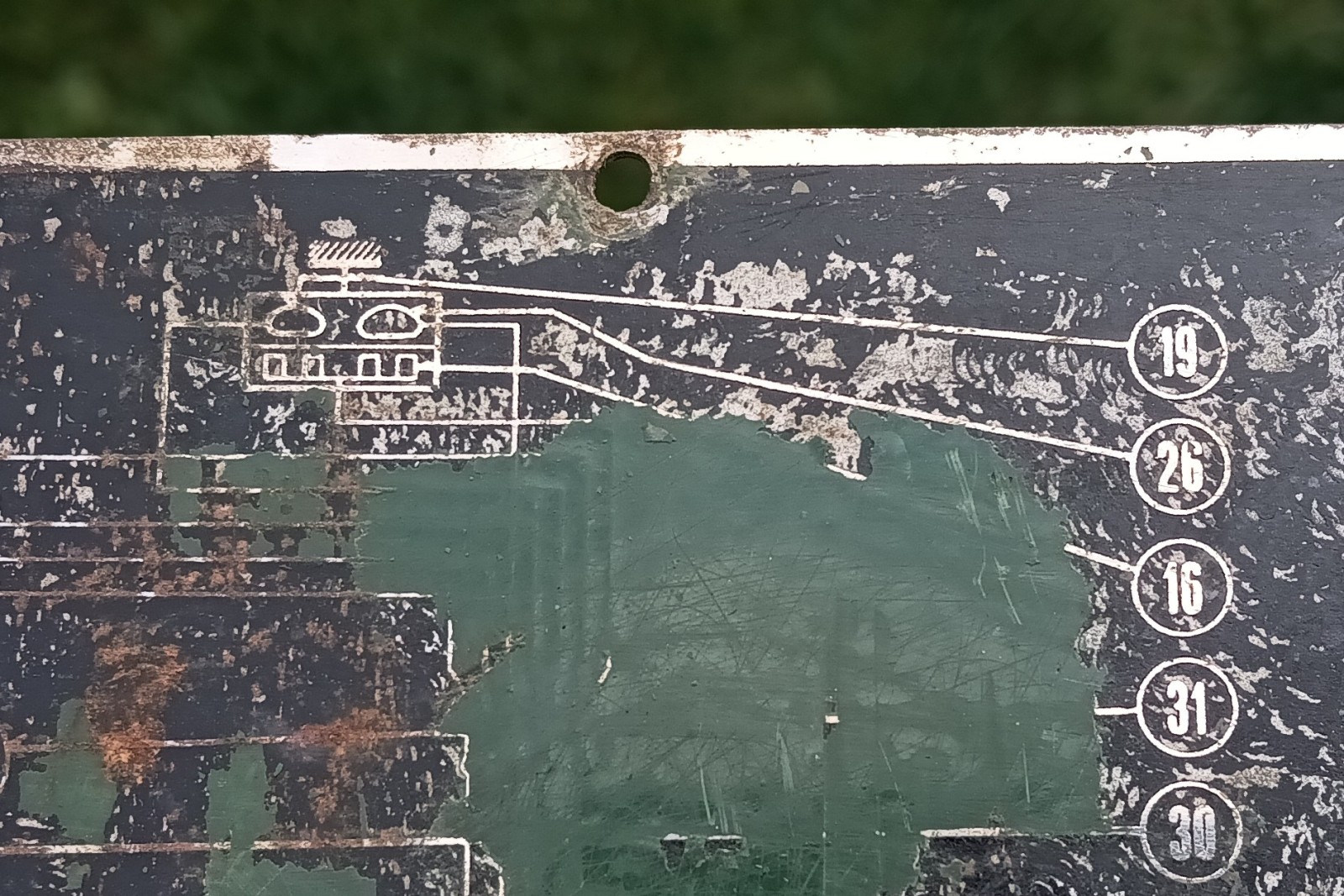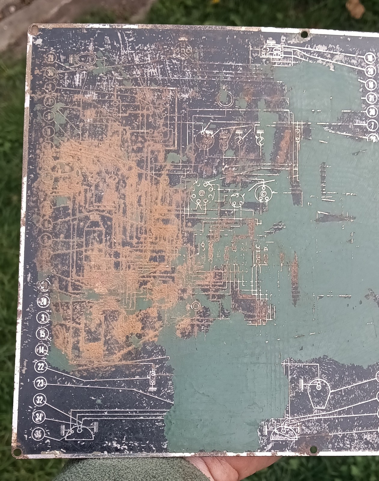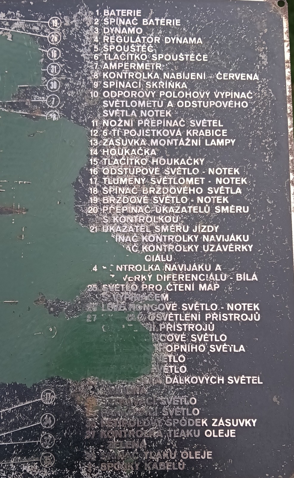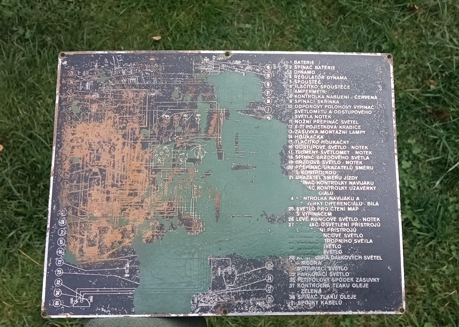Elektrická schéma zo starého vojenského vozidla, rozmery 20x26 cm. Vedel by niekto, s akého vozidla to je? Brzdové svetlo Notek je tam zobrazené ten starší typ.