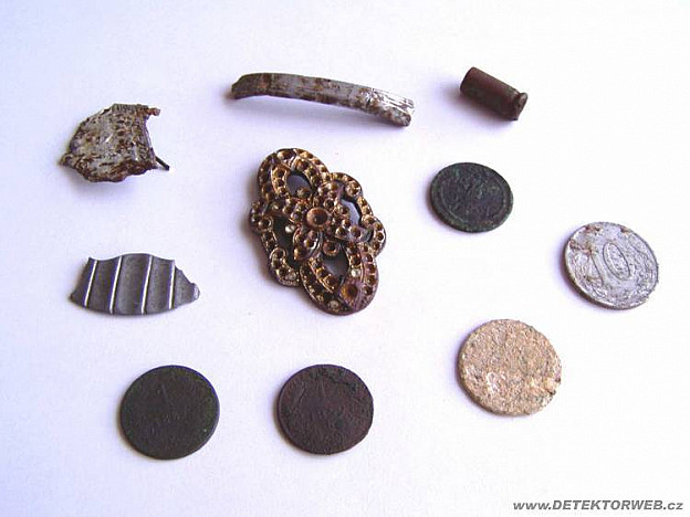03. 05. 2006, 14:45Ta brož je tak z naší 1. republiky a ten velký rezavý kruh, je nákončí z náboje kola, třeba na žebřiňák. Ale podle toho skosení to může být i kroužek z kuželíkového ložiska.