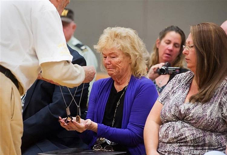 Aby Donna předala Peggy pozůstalost patřičným způsobem, sehnala peníze na cestu a vydala se do Nevady. Před tím ale ještě oslovila nevadskou Patriot Guard, zda by ji nezkontaktovali s veterány z II. světové války žijící v Daytoně či poblíž, kteří by s vojenskými poctami předali Peggy vojenská vyznamenání. Patriot Gurad oslovila devadesátitříletého veterána Quentina McColla, který zorganizoval sedmdesátičlenný motocyklový doprovod veteránů Donny Gregory z Missouri do Nevady. Když Doona přijela do Daytony, konal se v místní střední škole ceremoniál, kterého se zúčastnila Peggy Eddington-Smithová, její rodina, členové Spolku zahraničních veteránů, kteří bojovali v II. světové válce, představitelé města a místní obyvatelé. Peggy přijala otcovu Bronzovou hvězdu, Purpurové srdce, repliku identifikační známky a osobní dokumenty. Donna přítomným přečetla nahlas dopis, který Eddington napsal své dceři.