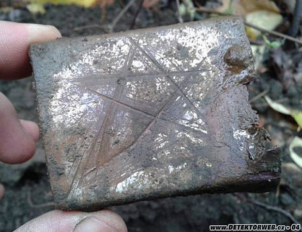 Před nedávnem jsem chtěl při kopání v rusolágru najít nějaké to, , frontové umění“ a na posledním hledání se mi to splnilo. Po jednom hrábnutí lopatkou v bývalém ruském tábořišti na mě z hlíny vykoukl obdélníkový předmět. Ha, přezka (!!! ) blesklo mi hlavou, jaká asi bude?