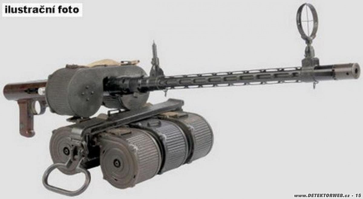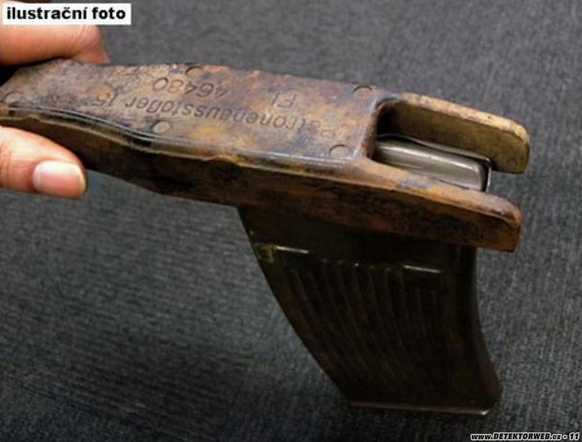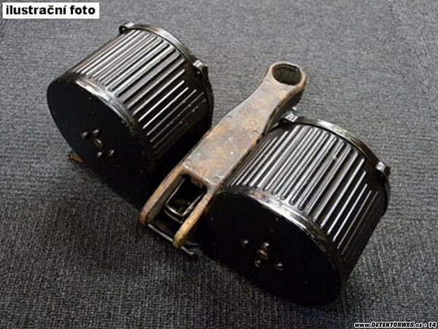 Nyní už jen sedám ke googlu, abych se dozvěděl o funkci předmětu něco víc. Jde opravdu o přípravek na vybíjení nábojů ze zásobníku (jak schránkového, tak bubnového) u leteckého palubního kulometu (viz ilustrační foto). K čemu ale sloužil kruhový otvor na vrchu a tři malé otvory zespodu se mi vypátrat nepodařilo. Nevěděl by někdo? Za každé info předem dík.