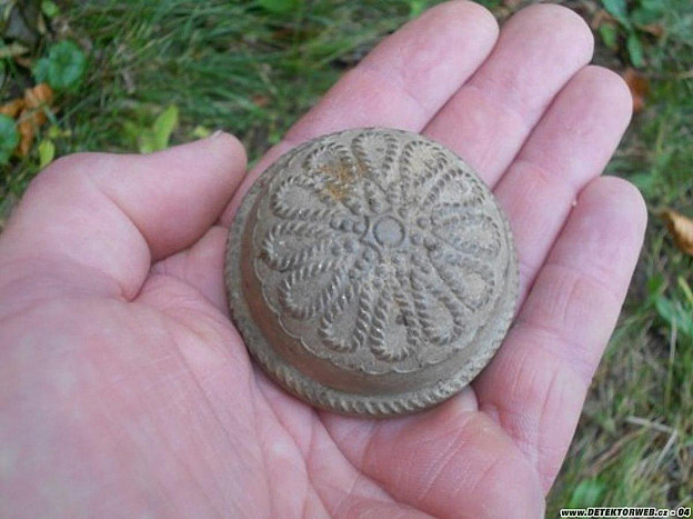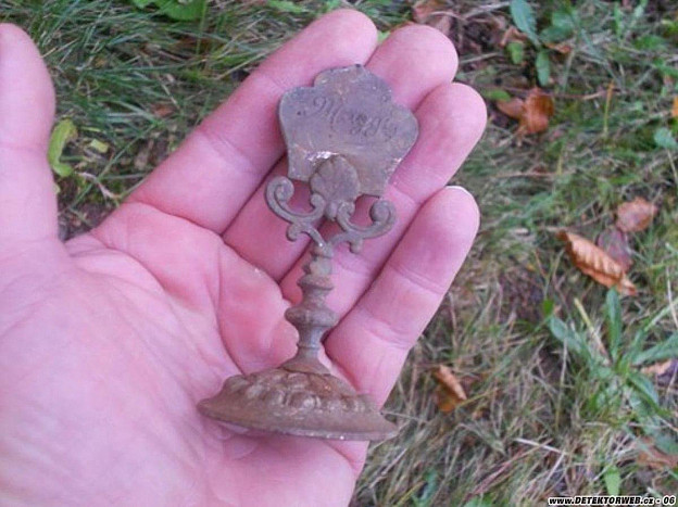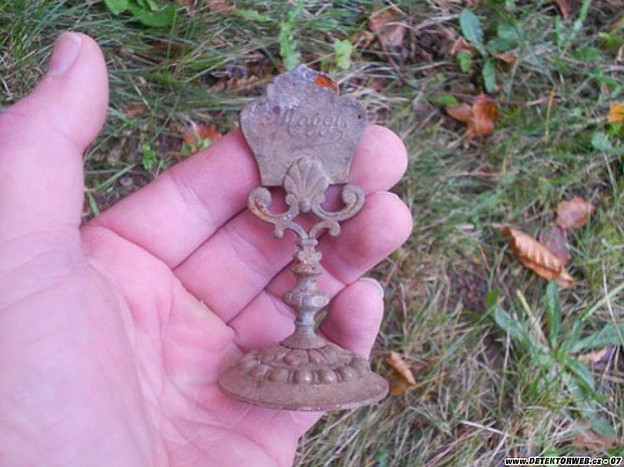 Ahoj, posílám snímky z podzimního mrcásku. Trošičku jsem se ometal v okolí zaniklého stavení, kroky mne dovedly do nedalekého úvozu, kde bylo sice různé hegeše fůra, ale nenechal jsem se odradit a nakonec mne tam čekal docela pěkný hledačský nález!!! Vršek zvonku jízdního kola, sice bez reklamy, zato pěkně zdobený, a hlavně nepolámaný, štítek ze zaniklé pražské Trojské mlékárny (od Prahy jsme 150km! ) a nějaká ozdoba s logem Maggi. Původně jsem se domníval, jestli nejde o nějaký votivní předmět, ale spíše mne to svádí k nějaké reklamně... Nemáte prosím někdo povědomí, o co se v tom předmětu s logem Maggi jedná?Hezké nálezy všem!!!