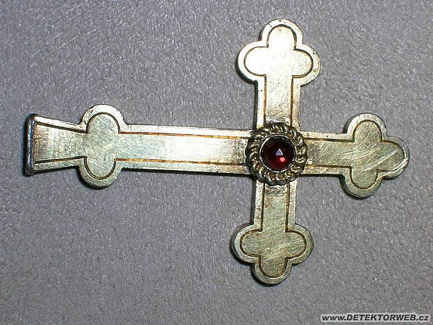 22. 10. 2007, 15:45Kříž je super. Má punc? Asi ne - tipl bych, že je odlomený z nějaké monstrance. Ten kámen by mohl být zajímavý - pokud by to byl přírodní rubín, tak máš na nový detík