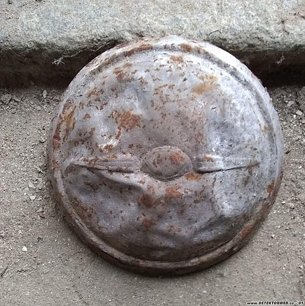 Poklice z auta nalezená při vyklízení chlívku na chalupě. Z druhé strany jsou zbytky černé lesklé barvy. Emblém mi vůbec nic neříká, nevěděl by někdo, z jakého auta pochází?Děkuji, halfzwaar