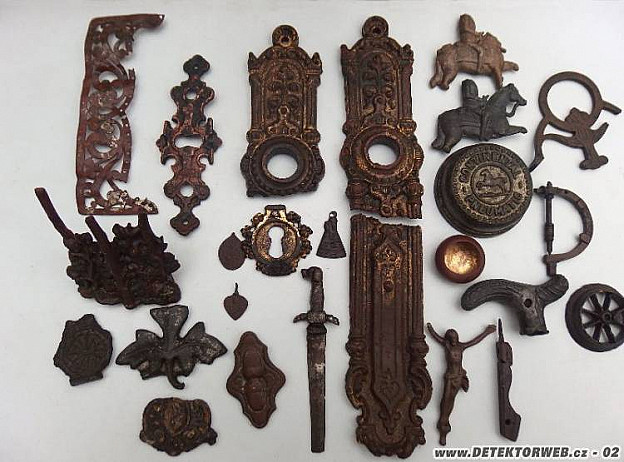 Už asi málokdo čeká v okolí měst a vesnic nějaké zajímavé nálezy, hlavně množství nálezů. Vše v okolí je prochozené místy několikrát, a tak většinou paběrkujeme. Jaké bylo moje překvapení za poslední vesnickou chalupou, když jsem metr po metru musel na kolena a hledat (ohýbání mi už moc nejde). Z polních nálezů se dá i leccos rozpoznat. Že to je u Jihlavy, že tu mělo JZD kravín, je jasné podle hromady víček od léků a stovky tub od mastiček. Žil tu někdo velice bohatý, protože málokdo si může dovolit takové kliky a ozdoby. Do 19tého stol tu mnoho dobytka neměli, protože mince jsou pouze 19. a 20té století. Ty byly většinou po smrti. Také tu měl někdo medaili bulharského cara Ferdinanda l. , což není všední nález. Středověk prezentuje pouze jedna přezka. A nejzajímavější je to, kolik psích známek se na poli, které má asi 1,5 ha našlo. A to není všechno, protože se mnou chodil kolega Bluerain a ten má dalších odhaduji 40 procent nálezů. Stejně jsme to tam nevyzobali všechno, další várka bude po orbě. Takže pořád ještě není vše uloženo v šuplících hledačů.