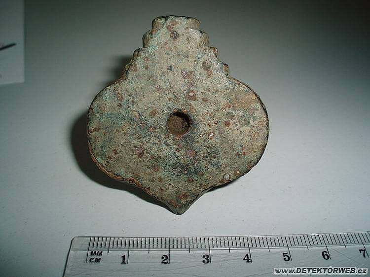 20. 05. 2009, 22:13Určitě to není ani z hůlky, ani z praporu. To by to na zadní straně nebylo ploché. Spíš si myslím na nábytkové kování, kdy v tom kulatém otvoru byla nějaká tyč a na druhé straně bylo zřejmě to samé. Mohlo to držet i koberec na schodech.