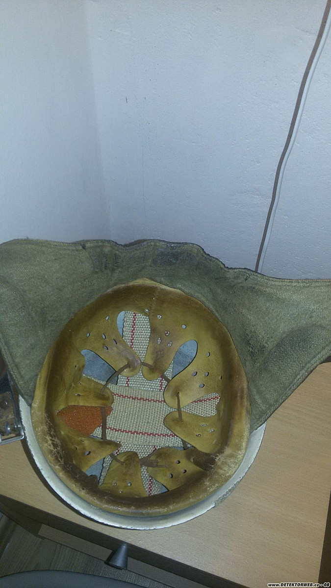 Byť přilby sbírám už řadu let (ale jen hasičské), tak tohle není můj "šálek kávy" a přilba se ke mně dostala spíš náhodou. Snad měla být totožná i na prodej na Aukru. Když jsem ji viděl poprvé, tak jsem si myslel, že se jedná o helmu NSFK pro piloty kluzáků. Tvar by seděl, i vnitřní výstelka odpovídá tomu, co pomohl najít strejda Gůgl, ale už ne ochrana krku. To je spíš jak u přileb na motorku. Co se materiálu tyče, tak je hodně lehká a je to něco mezi tvrzeným papírem a sklolaminátem. Hodně podobné jsou třeba první plastové hasičské přilby z 50. let. Jediné značení co jsem našel je velikost vytištěná na chlopni. Jak je z fotek vidět, zkoušel jsem odstranit i lak a lihovou fixu, kterou nějaký domácí kutil přilbu upravil, ale vykukuje akorát bílá barva. Dokáže někdo poradit, o co jde? Když by šla přilba z domu, tak nechci někoho uvést v omyl. Děkuji.