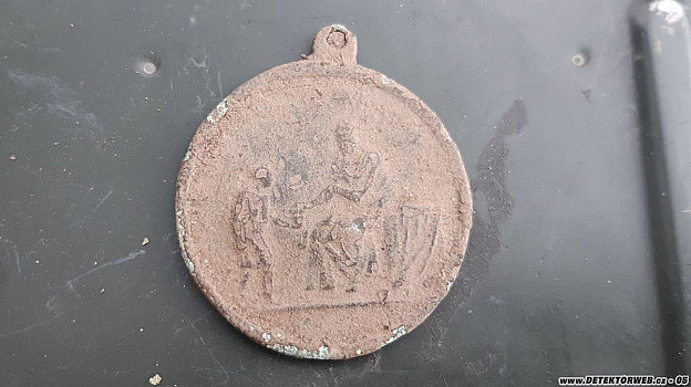 Tak jsem na jedno odpoledne vyměnil prut a Vltavu pod Lipnem za detík a lokalitu nad Lipnem. Teda padlo více pstruhů než nálezů :-) Poradí někdo, co je to za medaili? Nebo patrotiku... ?Děkuji Kasander