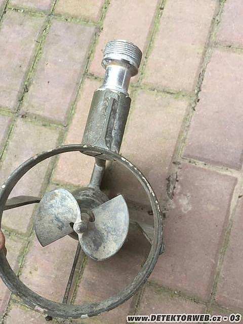 29. 11. 2021, 19:22Měl by to být měřič rychlosti proudu RVP ze soupravy podrobného ženijního průzkumu. Chybí k tomu ještě tyč, rukojeť a měřák, který ukazuje rychlost proudu v m·s−1.