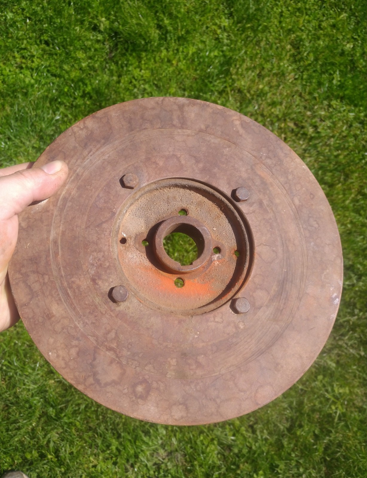 Dva bakelitove kotúče 220 mm priemer spojené skrutkami a železný stred s otvorom 27 mm na hriadeľ. Žiadne značenie, možno nejaka remenica alebo stará spojka? Vedel by niekto? Ďakujem.