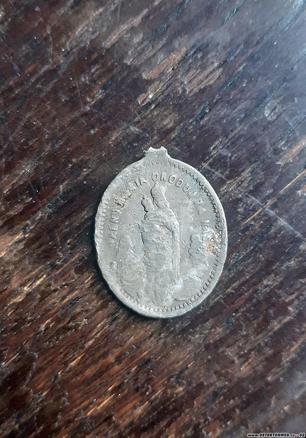 Posílám pro averse lepší foto svátostky, na jedné straně je nápis "Panna Maria oroduj za nás", druhá strana je bohužel nečitelná, tak snad někdo podle věží pozná, odkud je :-)Klark