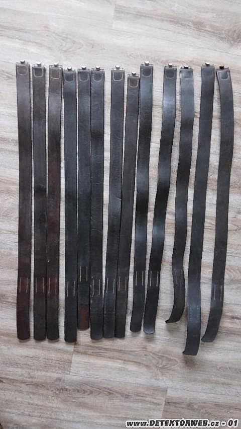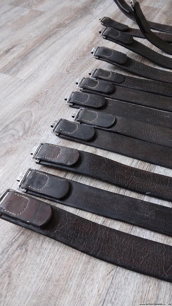 jsem veliký fanda téhle stránky, obdivuji, když se něco najde vzácného a to hlavně z války, sleduji tuhle stránku už dva roky a řekl jsem si že zkusím také najít nějaké válečné věci, když mám letní prázdniny, s tátou chodím skoro každý večer do hospody v naší vesnici, za starými štamgasty. Napadlo mě se jich zeptat, jestli někdy také něco nenašli... po dlouhém rozhovoru mi byla dána rada, ať zkusím zazvonit u jedné staré paní K. na starém statku asi kilometr od nás. Prý její zesnulý manžel (bývalý štamgast hospody), kdysi sbíral mince a podobné věci. Jelikož bohužel to je veliký oplocený statek a barák daleko od plotu, kde není samozřejmě zvonek...:-D, tak mi bylo hloupé přeskakovat plot na cizí zahradu a nahánět nějakou babičku, co má po manželovi... Tak jsem napsal na papírek svoje telefonní číslo se jménem, že sbírám tyto věci a svou adresu, ať se ozve do schránky. Chvíli jsem už ztrácel naději, a pak najednou po dvou týdnech kolem 8 hodiny ráno zvonil u nás doma u branky nějaký klučina na krosce. Když jsem vyšel ven a hodili řeč, tak mi řekl, že jede na tuhle adresu, že ho poslala jeho babička s taškou. Prý mě viděla u té branky, jak tam něco házím, a protože nemůže rychle chodit, tak než vyšla, tak já už byl s kolem zase doma.:-D Protože mě zná už jako mimino přes rodiče, o čemž já nevím, tak mi poslala tuhle tašku s pásky po manželovi. Asi to byl sběratel opasků nevím. Chvíli jsem koukal na internet, a nejsem si jistý jestli jsou z války nebo nějaké 70 léta, obracím se tedy na Vás hledače, protože jste větší borci v tomhle a já jen fanda.