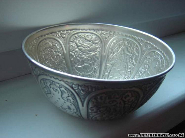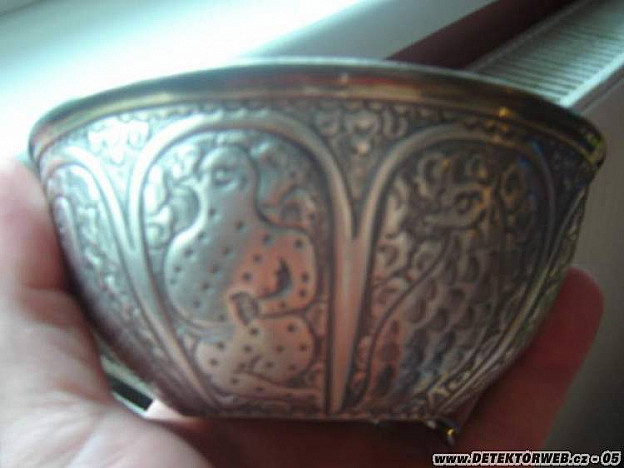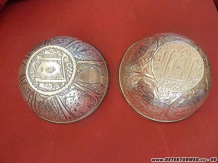 Způsobem zpracování a volbou motivů mi misky připomínají pseudoorientální práce ze závěru 30. let minulého století, většinou ovšem prováděné v mosazi. Mimochodem, nechal jste si určit přesnou ryzost kovu?