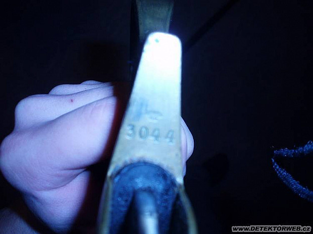 Sesty obrazek je ponekud mene povedeny ale je to nejake cislovani 3044, totez cislovani je i z obou stran pochvy. Na obrazcich sedm a osm je na ostri savle vyrazen jakysi napis ktery je bohuzel prekryty rukojeti a nemam zkusenosti s rozdelavanim rukojeti nechal jsem to radeji byt, mozna priste dodam fotky k nejakemu dalsimu nalezu. Jinak rukojet je podle meho amaterskeho mineni vyrobena z mosazi a cela savle je celkem lehka a jeste stale naolejovana.