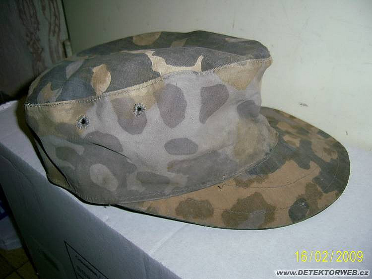 18. 02. 2009, 15:54Podle vzoru a černých flíčků na dubovém podkladě by se mohlo jednat o ranný platan - vzor maskování SS. Těžko říct, zda je to origo nebo ne... Odstíny jsem viděl ale hodně podobné u originál převlekáče... Kdy je to šité se asi nedovíme...