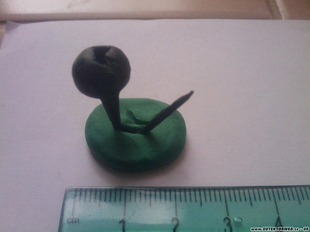 A na konec, něco, co vypadá jako háček na ryby, nebo náušnice... Je to viditelně ohnuté, něco jako špendlík. Vršek je kulička, dutá. Tak u tohoto nálezu opravdu nevím. Budu rád za určení.