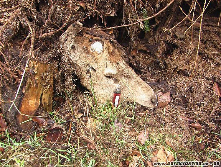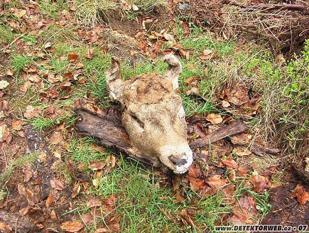 U cesty, kde byla signálka, byla v igelitovém pytli jelení hlava bez parohů.