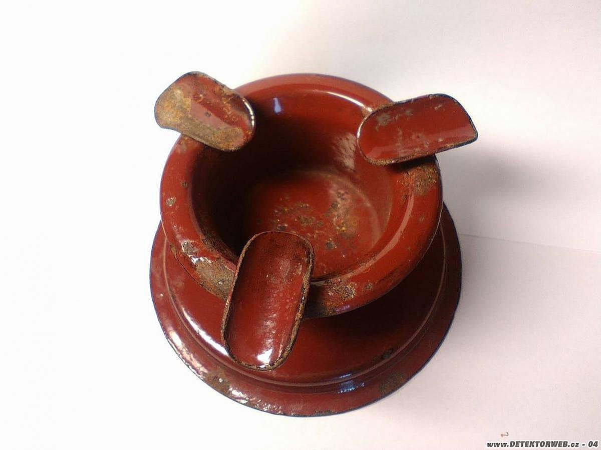 Popolník vyrobený pravdepodobne z veka obalu na prepravu munície a ďalšej neurčenej časti.