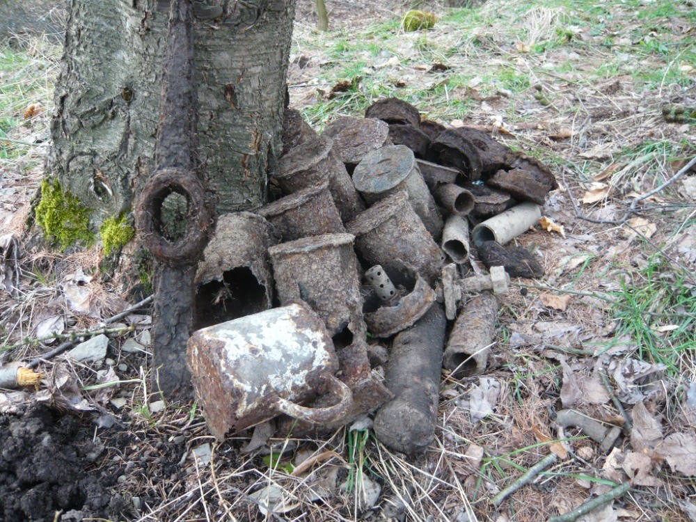 Na okraji lesa jsem provedl průzkum pozice 75 mm kanónu. Jen ty polorozpadlé hilzny tam zůstaly. Němci odtamtud postřelovali přístupovou cestu, kterou měli jako na dlani. Kolega je zachránil a odevzdal do sběrných surovin k dalšímu zužitkování.