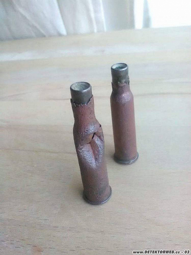 30. 03. 2016, 18:58Taky to takhle často nacházím nebo kulky jiných nábojů nacpané do nábojnic nebo např. nábojnice luger na mauserce apod. každý takový nález jsem rozdělal, ale žádné stopy po něčem uvnitř jsem nikdy nenašel, přikláním se k zákopové nudě