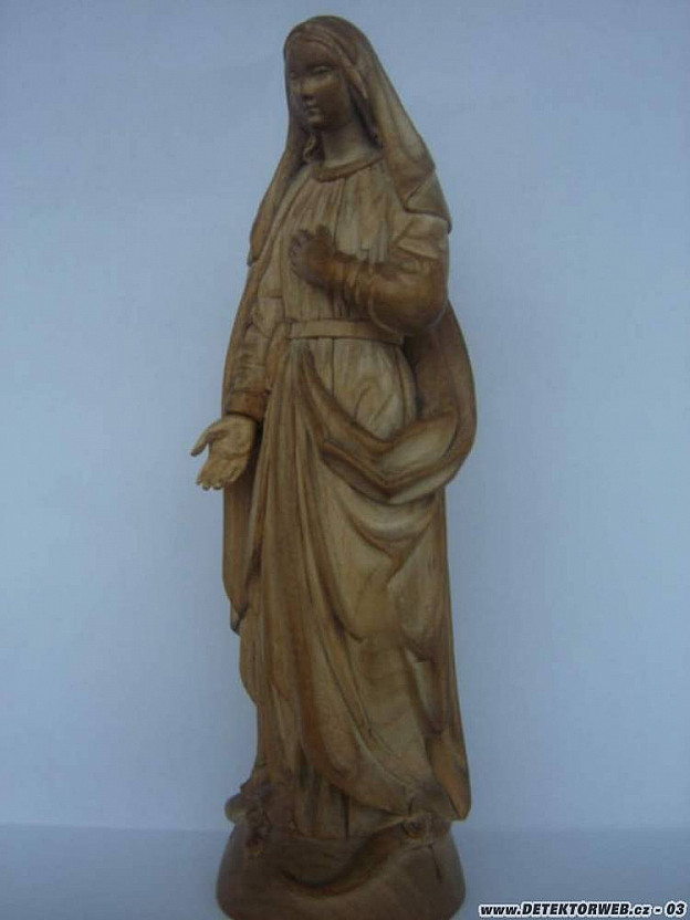 15. 06. 2011, 12:40Láďo, tohle zas tak velké umění není a že by z javoru někdo dělal předlohu je nesmysl. Socha je sériovka do výklenku ve zdi, či pro jiné venkovní umístění - kde by jinak polychrom opadal. Socha nikdy polychrom či monochrom neměla, jde o lidovou tvořivost řemeslníka - řezbáře, prodávanou na velkých poutích. Že by Panna Marie IMMACULATA někdy dupala po hadovi je kýč velmi podobný originálům odznaků z Polska, kdy zde žasnou, co autor dokáže vymyslet. Takové sochy dělala celá rodina řezbáře, kdy pak v závěru on dotvořil detaily - zde jen obličejovou část. U dřevěných soch nelze stanovit jejich vznik - 100 let se dá dotvořit jednoduše za 10 minut - vím, o čem hovořím a mohu to dokázat. Viděl jsem znalce, který datoval sochu 3 měsíce starou jako nejméně osmdesátiletou. Pokud jsi za ni dal málo, je to v pořádku, pokud stála dost - nevěř ničemu, vše chce historku. U soch se vychází hlavně ze stylu a ne z provedení.