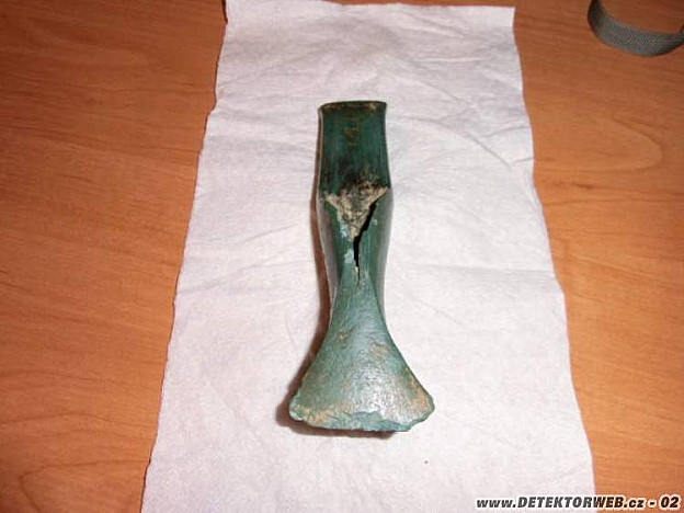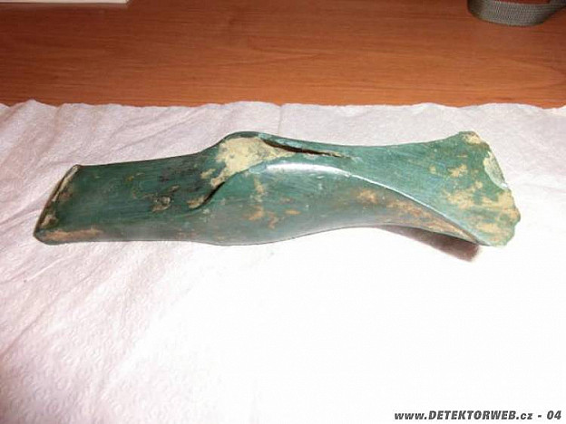 Zdravím všechny slušné hledače. Chtěl bych se s vámi podělit o příběhu bronzové sekerky. Kamarád mě vytáhl do svého rodného města na mrcas. Sliboval jsem si od toho pár pěkných koleček a odznáčky popřípadě přezky. Za války zde byli jak němci tak rusové a po válce česká armáda střežila muničák. Vzali jsme to na okraji města od starých lázní směr šibeniční vrch přes sjezdovku. Nálezy celkem slušné pár koleček, knoflíků a nějakej ten odznáček, falera a taková ta běžná droboť. A pak to přišlo na místě hodně nečekaném krásný signál a v hloubce 15 - 20cm bronzová sekerka jen ta jedna a v okolí jinak nic zajímavého. Hrozné nadčení a pak po návratu samozřejmě pochlubit se v práci atd. Rozhodl jsem se, že sekerku odnesu archeologům a že dostanu nějaký ten darovací papír a společně s fotkou sekerky ho budu mít v nálezové vitrínce.