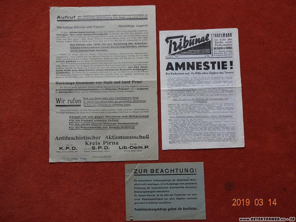 O deníku NSDAP "Die Zeit" mi v Retro-antiku paní Zahajské řekli, že je někdo objevil při rozebírání starého včelího úlu. Radost mi udělaly i dvě předválečné protinacistické tiskoviny, které byly mezi ostatními věcmi.