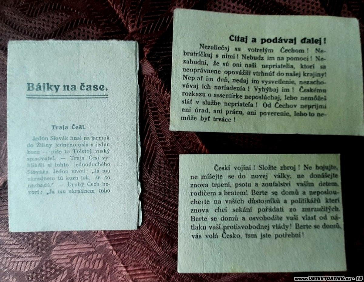 Před několika dny jsem na bleším trhu v jednom kufru mezi různou drobotinou ze šedesátých let objevil tyto zajímavé dokumenty po italském legionáři dr. Jaroslavu Pelikánovi, příslušníku 39. výzvědného praporu v Itálii. Tyto dokumenty se týkají i poválečné historie bojů za udržení budoucích hranic s rudým gardami republiky RAD a zároveň i tehdejšího slovenského nacionalismu v rámci polit. hnutí Slováků za samostatnost. Musím říct, že takové památky jsem ještě neviděl ani v muzeu.Dokumenty jsem oskenoval a poskytl ČSOL v Praze.