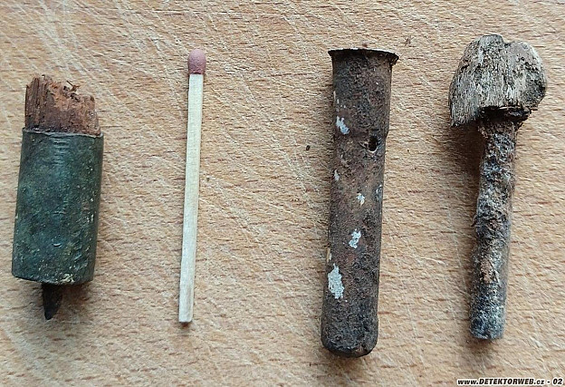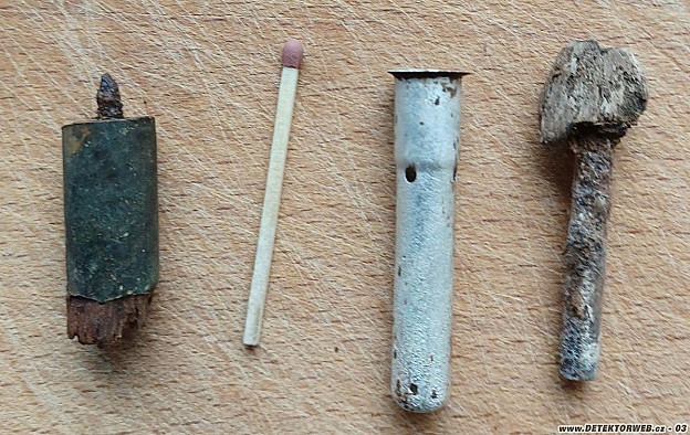 Zdravím všechny hledačky a hledače a požádám znalce o identifikaci dnešních nálezů. Obě věcičky jsou z lesa. Jsou to nějaké blbůstky jaksi zašpuntované dřevem.Na fotce č. 1 je to ještě ve stavu, jak jsem to vytáhl ze země. Na fotce č. 2 je vidět, jak šel ten špunt vyndat a prosvítá hliník. Na fotce č. 3 již je vidět, že je to hliníkové. První předmět má zřejmě na sobě vrut na uchycení, bohužel je zkorodovaný.
