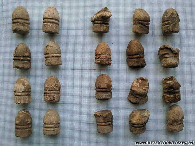 10. 02. 2012, 17:19Na první fotce jsou projektily z pušky Wanzel, je to předělaná RU perkusní puška Lorenz které byl dodán klapkový závěr a mohla tak střílet už klasickou municí (tj. nábojnice se střelou). Na druhém fotu jsou projektily Werndl M77 a na třetí Werndl M67 oboje RU, oba druhy projektilu jsou již rovněž z nábojnic. Čtvrté foto vlevo nahoře jsou kompresní střely z RU perkusní pušky Lorenz (hlavní zbraně RU armády za války 1866). Ostatním si nejsem zcela jistý, jen si ale myslím že ta největší z poslední fotky nebude 14,5... alespoň ne z PT pušky. Ty mají ocelový plášť a jádro z wolframu.