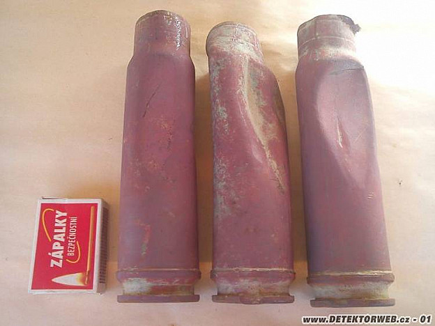 Hrdlo nábojnice má cca 30 – 32 mm v průměru, dno nábojnice 39,5 mm v průměru. Výška nábojnice je cca 150 mm. Jediný popis na dně nábojnic, který jsem našel je na „4. hodině“ - „ OTK „, na „9. hodině“ je na jedné číslice 66.