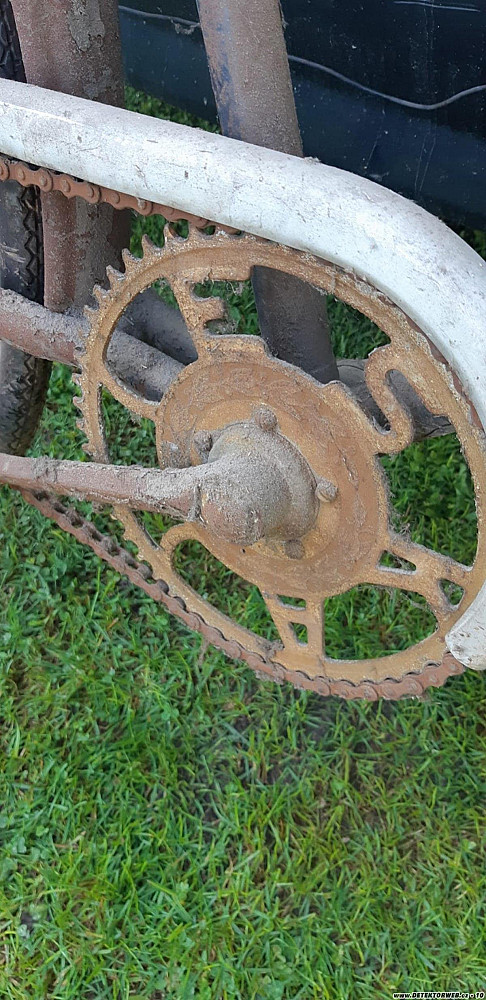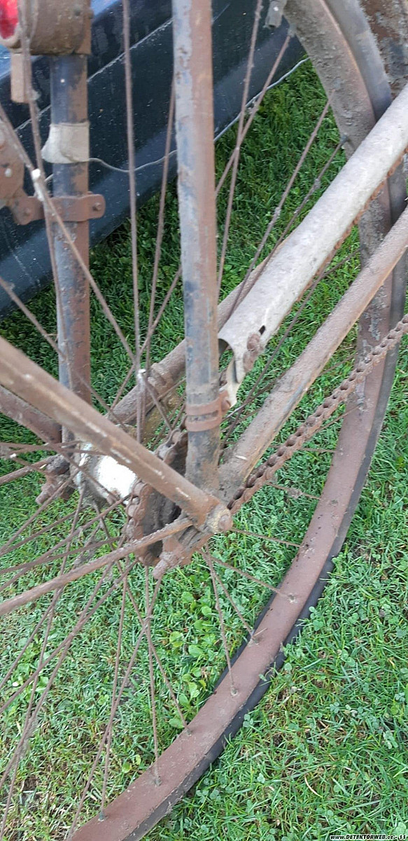 07. 09. 2021, 13:41Obyčejné pánské Prvorepublikové kolo. Ve vzácně kompletním stavu. Chybí pouze štítek na krku. A ten hliníkový kryt řetězu nepatří. Ale jinak pěkný a kompletní stroj. Je to hodně práce, ale dá se z něho ještě udělat pěkný stroj, samozřejmně bez lakování. Vše pěkně vyčistit a nakonzervovat a bude to krasavec. Jo a při troše štěstí by na zadní nábě mělo být dvojčíslí a to je rok výroby. V případě, že to zadní kolo je originál.