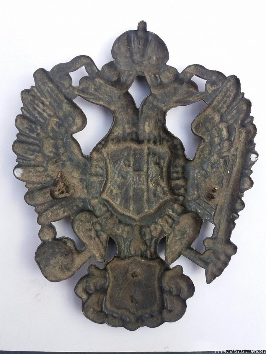 12. 09. 2017, 14:27Train = Trén. Uniformy jako dělostřelci. Tedy hnědá saka a modré rajtky. Jen na rozdíl od dělostřelců měli vyložení nikolivě červené, ale modré. Čáko, na kterém byl tento orel je stejné s žíněným chocholem jako u dělostřelců. Zde tento odznak je ještě staršího typu na čáky do roku 1870. Ty pozdější nižší typy čák s menším tímto odznakem již neměly tento erb s písmenem T. U dělostřelců bylo číslo děl. pluku zachováno. Pěkný celkem cenný kousek a je-li to nález z bojiště Války 1866. Tak dvojnásob!