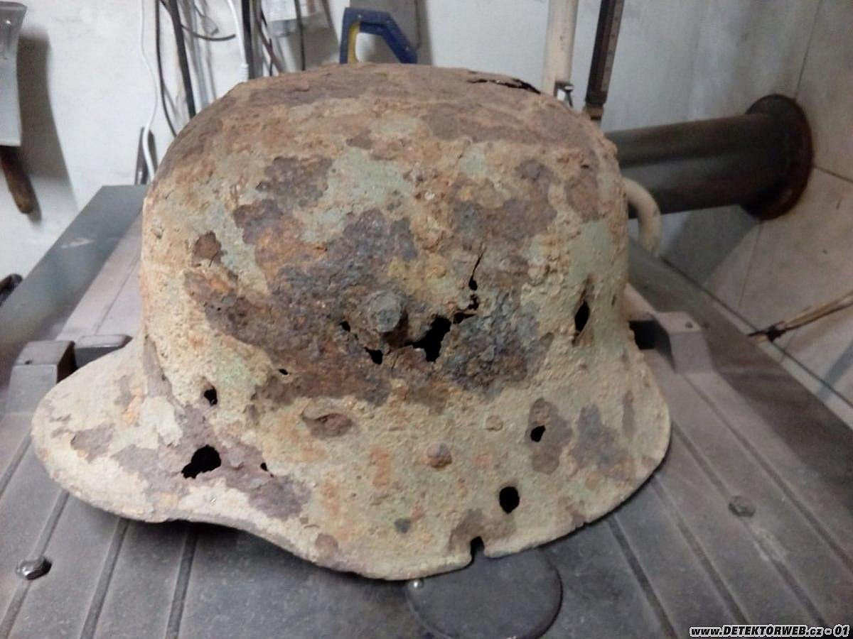04. 01. 2021, 19:08Ak je to hrdzavé miesto pod "výstupkom" nit na podbradník (je to zle vidieť), tak sa jedná o prilbu M17 rakúskej výroby (tzn. nemecký dizajn s rakúskou úpravou). Podľa presvitajúcej hráškovej farby by som tipoval prechodnú verziu pre Wehrmacht (podobnú mám v príspevku Rohatka III)