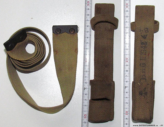 Prosím odborníkov o pomoc s určením. Tkaný opasok dĺžka 1250 mm, šírka 44 mm, hrúbka 2 mm, koncové kovania sú želežné, asi pomedené. Tkaný závesník značený/zle čitatelný/velká šipka B. H. GE 1942,?? malá šipka 84. Dĺžka 200 mm. šírka 34 mm, hrúbka 5 mm. Britský, asi pre bodák Lee Enfield - Wilkinson? -1907? Prečo rok 1942?Vopred vďaka za Vaše komentáre. S pozdravom