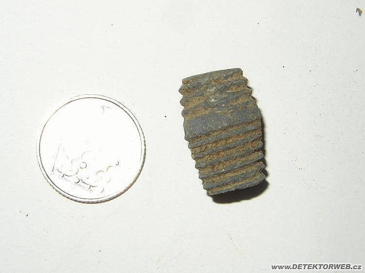 5. materiál: mosaz, průměr: 8,5 cm (bylo to ve stejné hloubce jako válečné nábojnice)