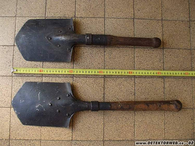 18. 07. 2013, 11:23horní poválečná maďarská a spodní je meziválečná či válečná taky maďarská. Vyráběla se i po válce. Od rakousko-uherské prvoválečné se liší absencí tzv. uší v místech kam tlačíš nohou při zrývání do země.
