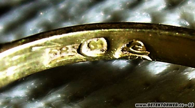 Ačkoli jsem v tomto "oboru" teprve začátečník, podařilo se mi kopnout tento zlatý prsten. Bohužel, ani po několikahodinovém pátrání na internetu se mi nepodařilo zjistit, podle značky, (puncu), do jakého období asi patří.