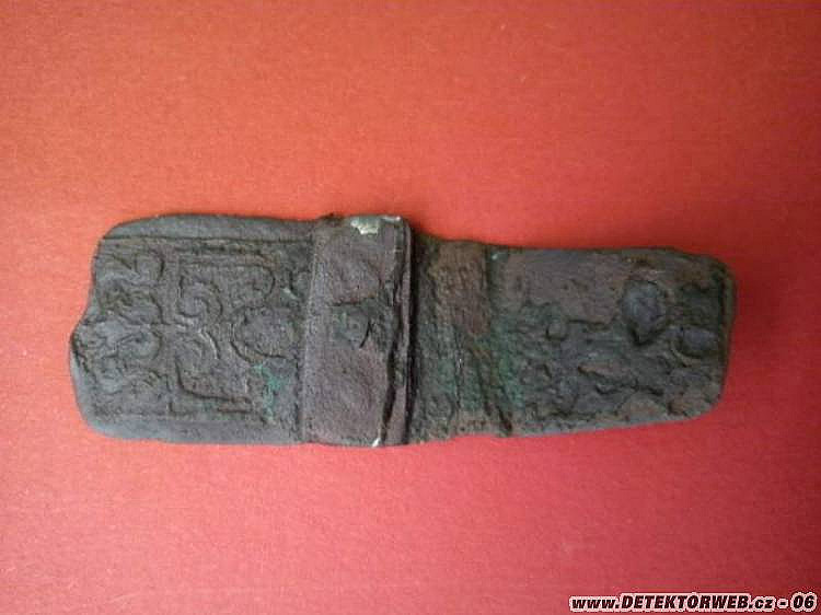 05. 04. 2012, 14:27Olovnička bude z trigonometru, (dřevěný nebo později kovový triangl s kyvadlem) ten zdobená plech by mohl být nártový z ostruhy. Knižní kování se takto nespojovalo.
