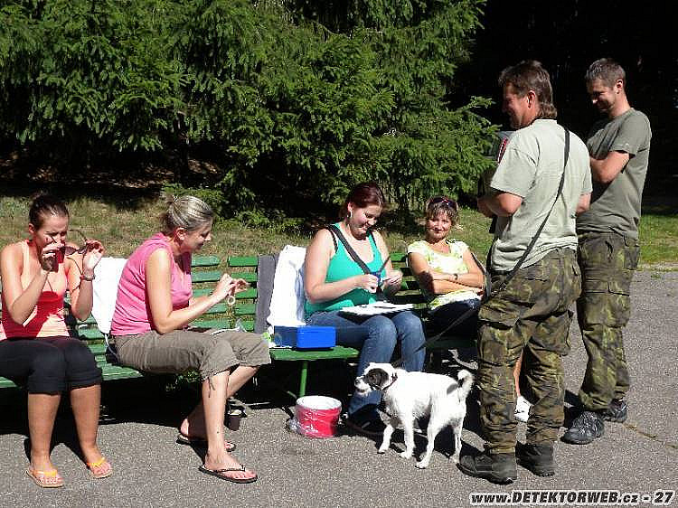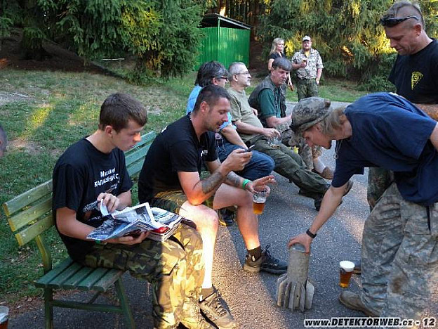 Snad právě poobědové pohodové rozpoložení způsobilo, že v odpoledním soutěžním klání - hodu detektorem, oblíbené to disciplíně každého setkání hledačů s Detektorwebem, nebylo tentokrát dosaženo rekordních výsledků. Ty nejlepší - 9 m 27 cm v disciplíně žen (tak daleko poslala detektor Helča) a 12 m 26 cm v disciplíně mužů (tady se předvedl Honza), byly ohodnocen pěknou cenou - rýčkem Fiskars.