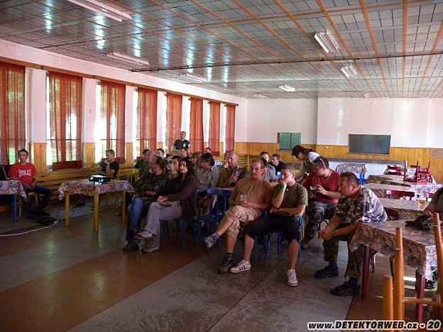 Z hřiště vedla přímá cesta do jídelny kempu, kde byly připraveny dvě přednášky archeologů, již jejich názvy slibovaly poutavé téma a následnou živou diskuzi: Miroslav Popelka ji nazval Detektorová prospekce a archeologie, Tomáš Bek zase přiblížil přítomným detektorový průzkum hradu Potštejn.